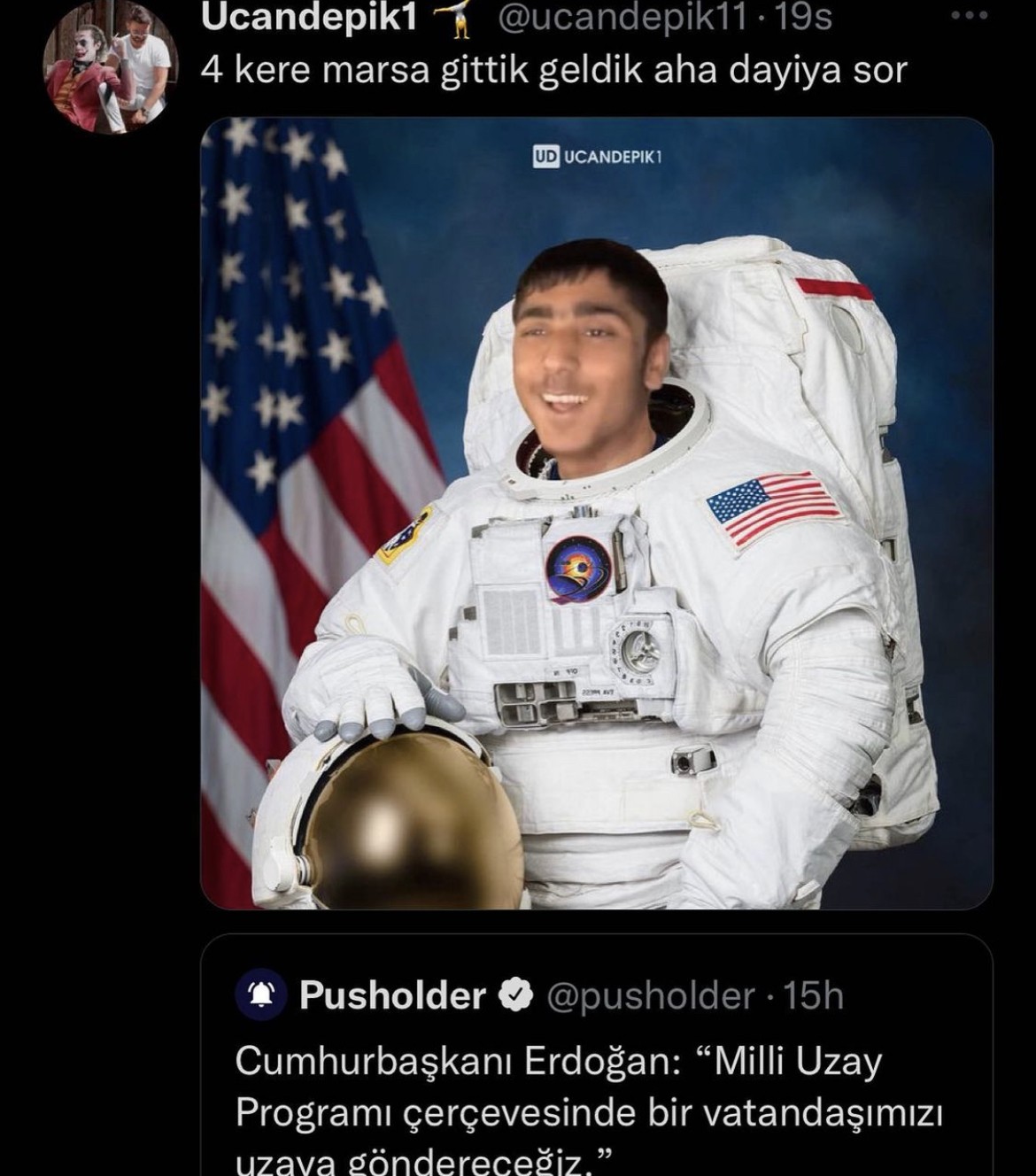 sonra da atandığını yayınla ve milletten dua ve destek bekle! tam akıl tutulması bu işte, uzay ajansı ve sebzecilik yanyana daha ne diyebiliriz ki?