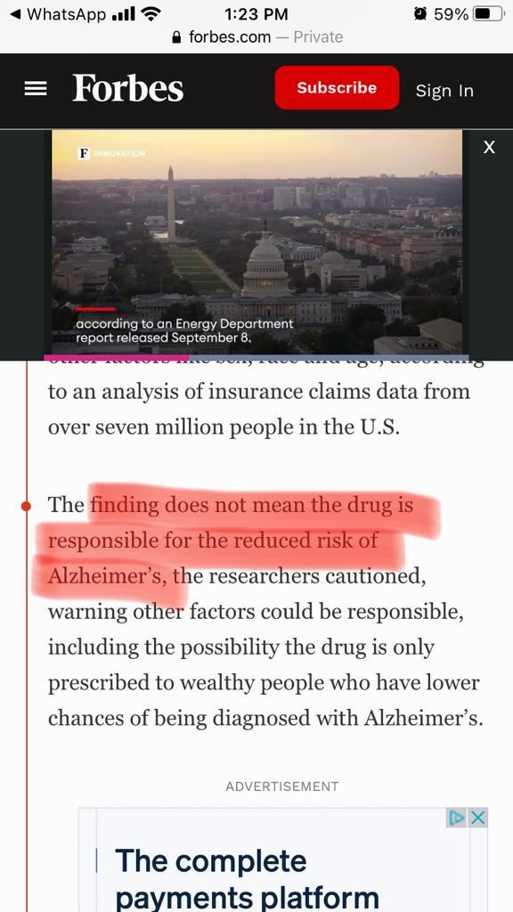 asıl haber kaynaklarında, bulguların viagra'nın alzheimer'a karşı etkili olduğu sonucu çıkartılamayacğı, viagra'ya ulaşan ileri yaşlı kitlenin daha yüksek refah seviyesinden geldiği, daha saglıklı bir hayat sürdüğü ve en önemlisi kapsamlı sağlık hizmetlerine daha yüksek erişimi olduğu da söylenmiş.