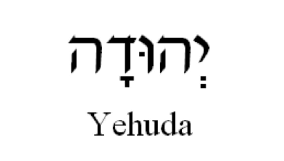 "yahuda" anlamına gelen yehuda'nın yukarıda ibranice orijinali ve aşağıda latinize edilmiş hali
