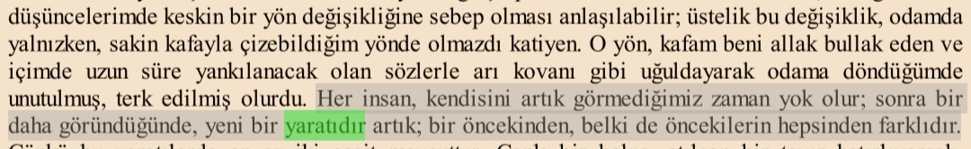 bizi veya herhangi birini en son yıllar önce görmüş birisi için biz o son gördüğü andaki bizden ibâretiz, bizim o andan beri dönüştüğümüz hâlden, yeni bir yaratı olmamızdan haberi yoktur.