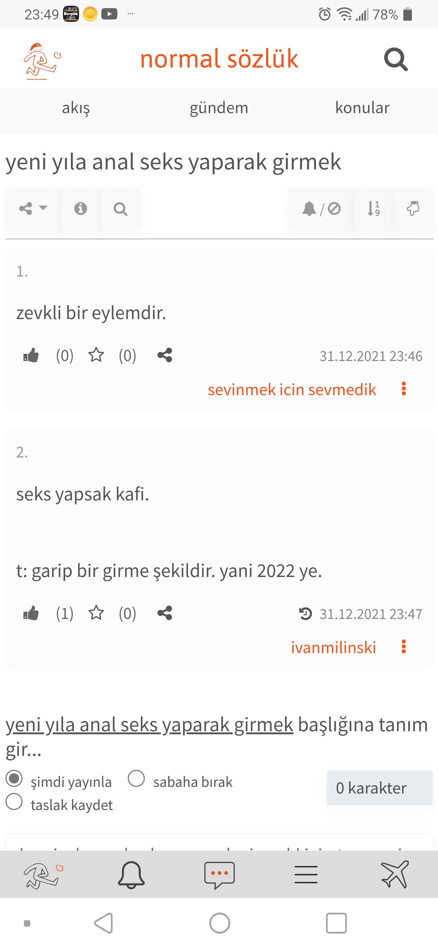 başlık "sevinmek icin sevmedik" tarafından 31.12.2021 23:46 tarihinde açılmıştır.