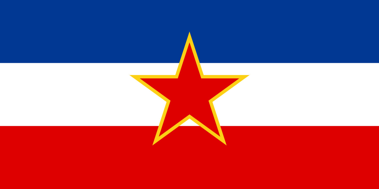 yugoslavya sosyalist federal cumhuriyeti'nin mavi-beyaz-kırmızı renklerinden ve kızılyıldızdan oluşan üç renkli bayrağı