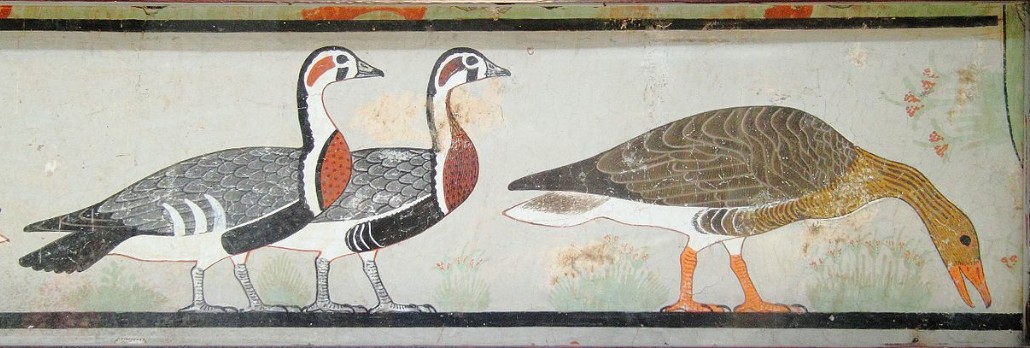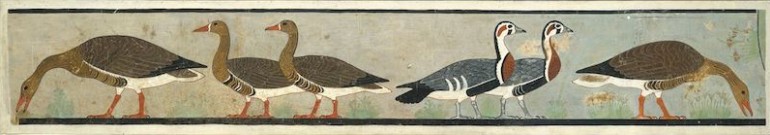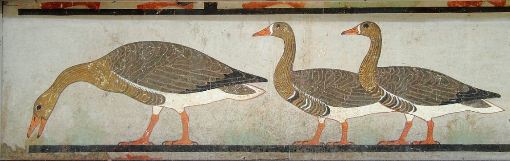 bugün kimsenin bilmediği, büyük ihtimalle nesli tükenmiş bir kaz türünün ana figür olduğu, 1800'lerde atet'in mezar şapelinde bulunmuş ve daha sonra  mısır müzesi'ne taşınmış 4600 yıllık bir duvar resmi.