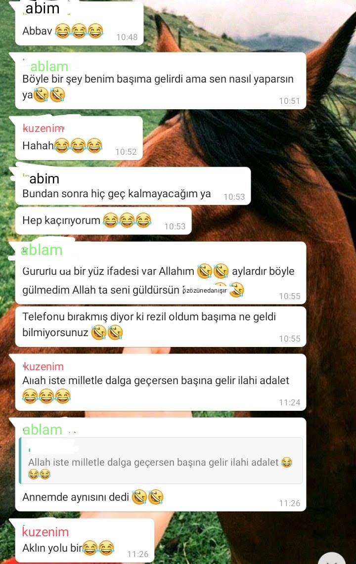 her şey ev arkadaşımın yaşam enerjisinin fazla gelmesi yüzünden gerçekleşiyor. kendisi ınstagram mesajlardan efektlerle fotoğraf çekip üzerine "günaydın, merhaba bebek, nasılsın" tarzı yazılar yazıp atar bana, ben de cevap veririm. baktım hep o atıyor dedim olmaz böyle, bu kez de ben atayım. demez olaydım. şöyle güzel çilli bir efekt buldum, dümdüz mimiksiz baktım kameraya o şekil fotoğraf çekildim, üzerine de "çillerim sana nasılsın diyor" yazdım, gönderdim. dakikalar geçti cevap yok, "bu kız bu kadar durmazdı, niye yazmıyor acaba" diye düşünüyorum ama mesaj görüldü mü görülmedi mi diye telefona bakmıyorum hiç. bir süre sonra telefonun ekranı yandı, cevap geldi heralde deyip elime aldım. amcamın oğlu "allah sabrını da verir*" yazmış. niye öyle yazdı acaba diye düşünürken mesaja girmemle başımdan aşağı kaynar sular dökülmesi bir oluyor. arkadaşıma attım sandığım mesajı hikayede paylaşmışım. oy hatırlayınca yine bir fena oldum. ve bir sürü zaman geçmiş üzerinden, hemen sildim ama onlarca kişi görmüştü bile. bir allahın kulu da bu kız ne yapıyor, niye böyle bir şey yaptı acaba diye mesaj atmamış. insan bir uyarır değil mi, ama yok, insanlık ölmüş.* kuzenime gerçekten attığımı mı düşündün saçım açık diyorum efekt sandım diyor, ne diyeyim ben daha.* aşağıya en yakınlarımın mesajda bana olan desteklerini de bırakacağım, gözleriniz dolacak muhtemelen.* hayır sosyal medyanın azizliğine de hep bir şeyler yerken maruz kalıyorum. twitter lincimde çekirdek yiyordum, bu olay da kahvaltı esnasında gerçekleşti. hayat bana yemek yerken telefonunu eline alma diyor, aldım ben bu mesajı.* neyse efendim bu da böyle rezil bir anımdır.