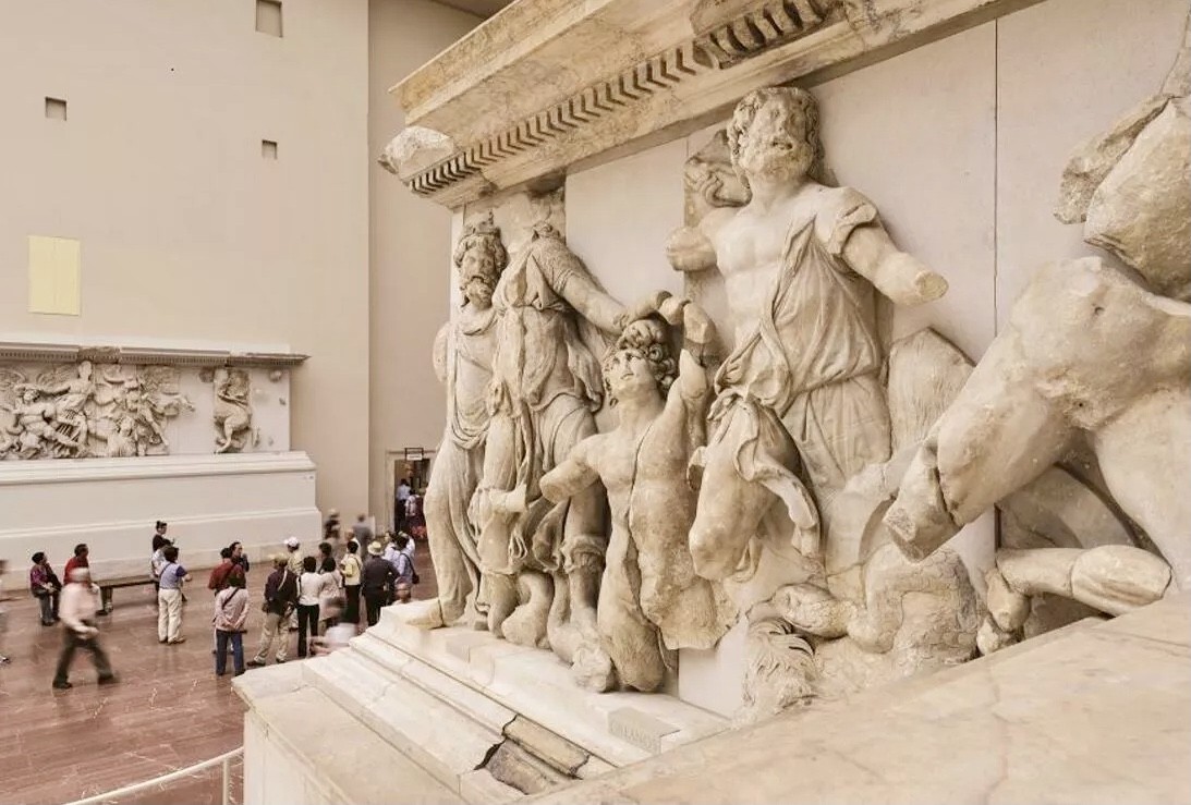 devasa bir yapı, altı katlı bir bina yüksekliğindedir. almanlar önce sunağı taş taş ekleyip bir yap boz gibi berlin’de bir araya getirdiler ve sonra üstüne bir müze binası inşa ettiler. bu sunağı çok seven ve daha büyüğünün yapılmasını isteyen tanıdık biri vardır adolf hitler