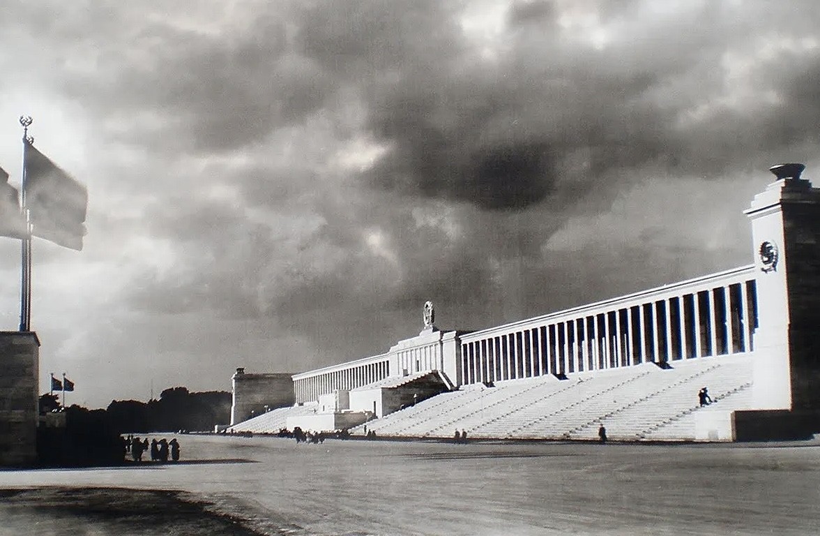 hitler, sunağı ziyaretinde yanında genç bir mimar vardır. adı albert speer. hitler, mitingleri için nürnberg şehrinde bergama sunağı kadar sağlam ve görkemli ancak çok daha büyük bir yapı yapmasını ister nazi almanyasının baş mimarından. albert speer uzun süre bergama sunağı üzerinde çalışır ve hitlerin isteğini yerine getirir. o eski şaşalı hitler miting görüntülerinin çoğu, speer’in inşa ettiği ve bergama zeus sunağından esinlediği nürnberg stadyumunda gerçekleşmiştir. ancak savaş döneminde bombalardan kurtulamaz bu yapı. bugün çok az kalıntıları geriye kalmıştır.
