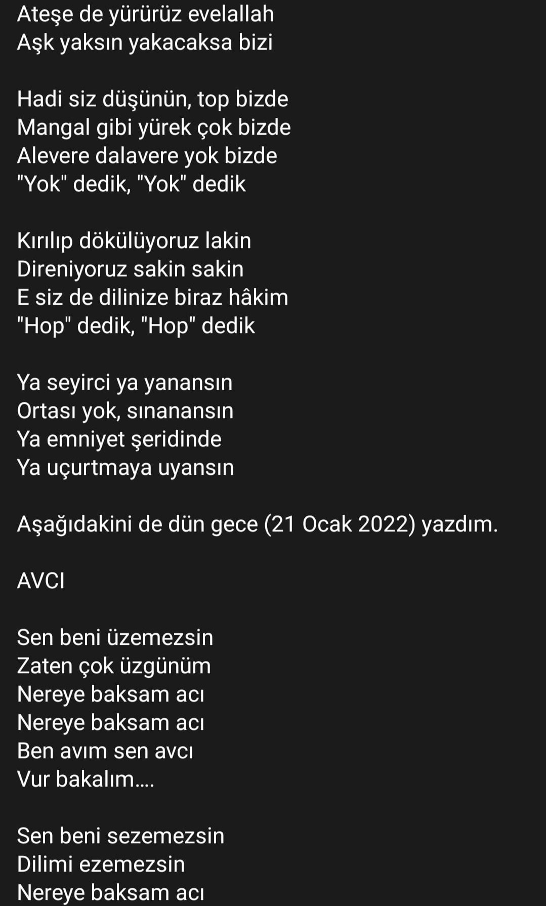 direnmelisin desin, kavgadayız desin, umuduz biz, geleceğiz desin…