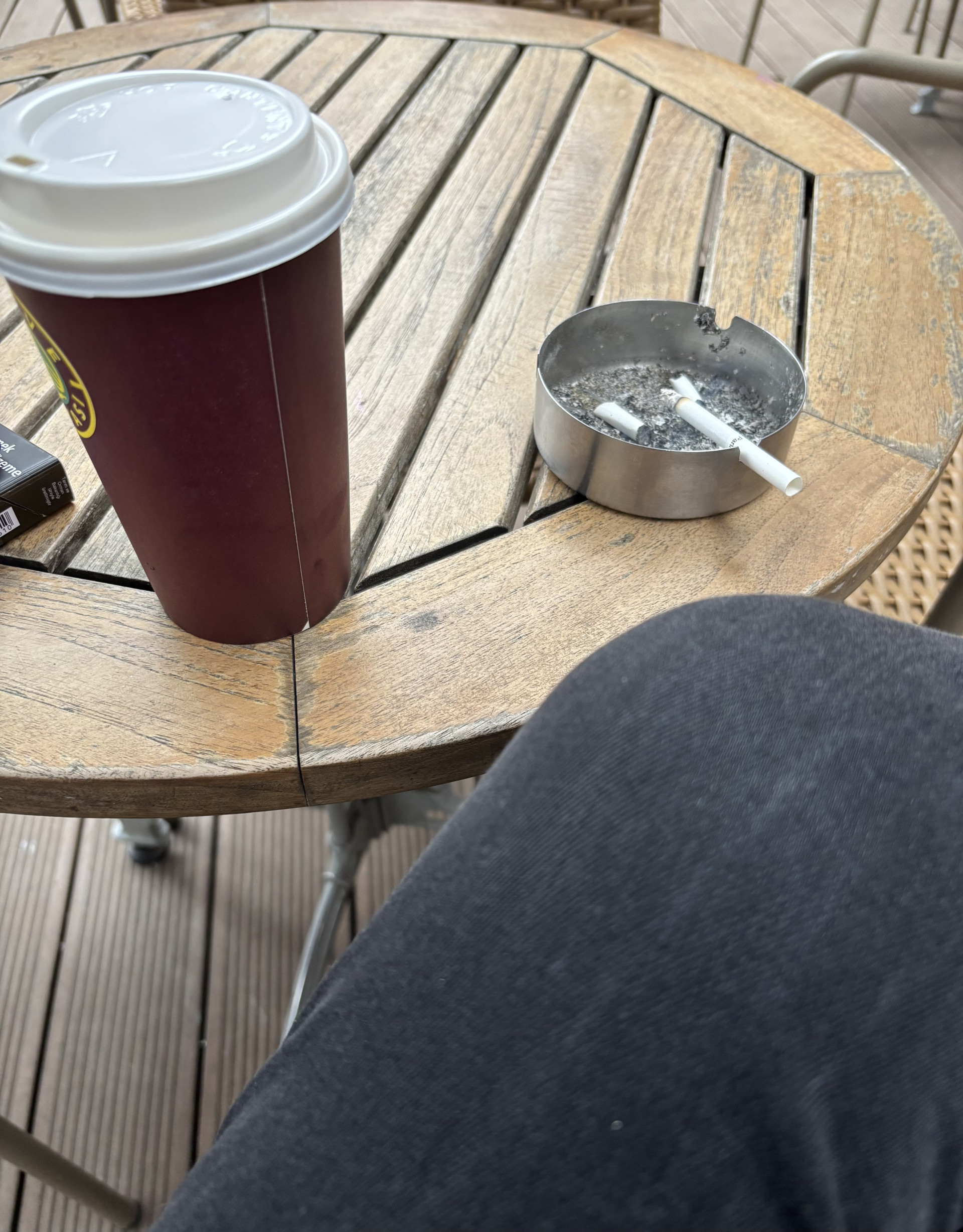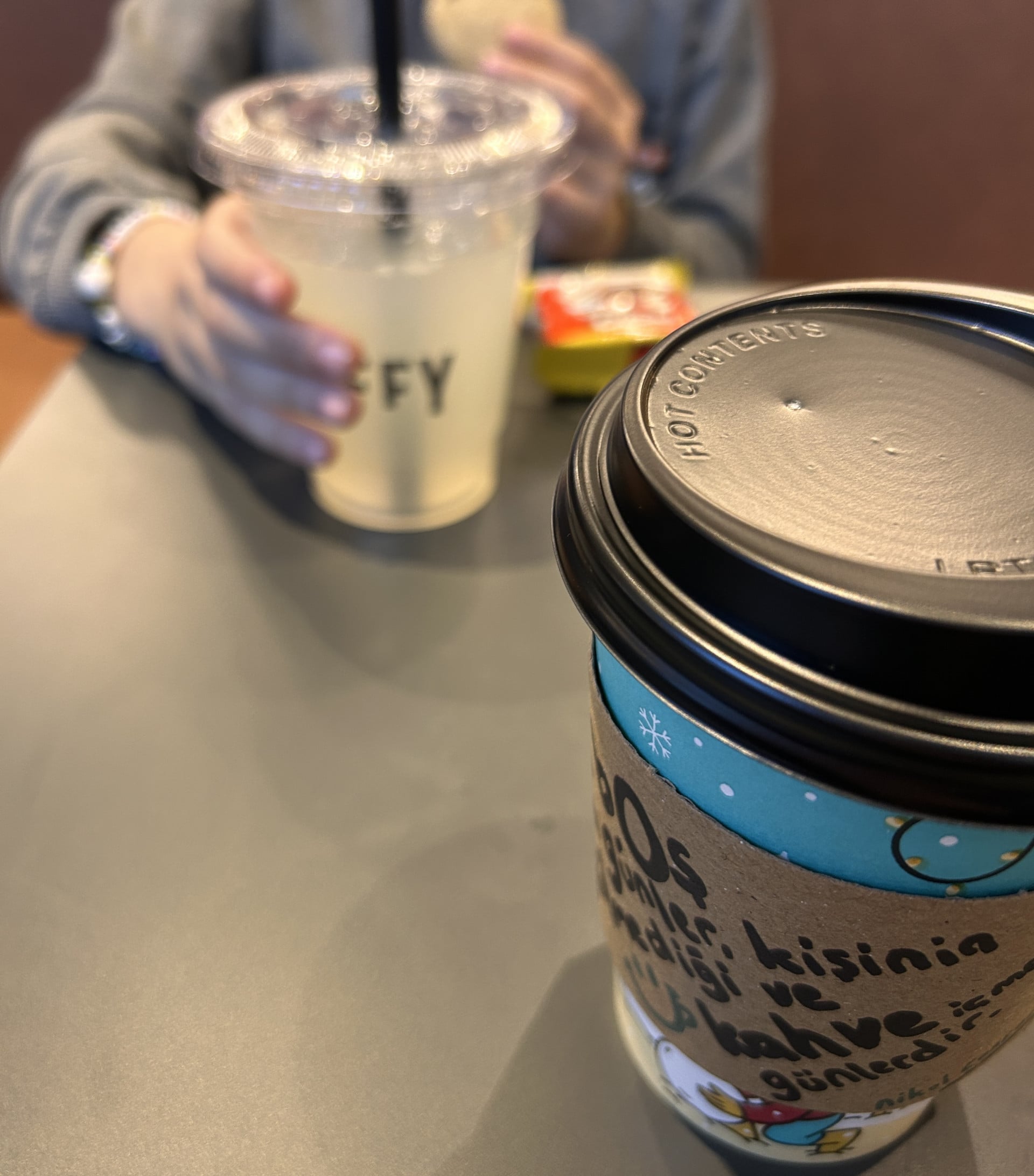 akşamüstü bazı evrakların fotokopilerini almak için kırtasiye gittim. dönüşte, mahalledeki bonveno marketten bir kahve aldım. marketin önünde masa sandalyeler var, geçtim oturdum kahvemi içiyorum. hava da yağmurlu. severim böyle aksiyonları yağmurlu havada.