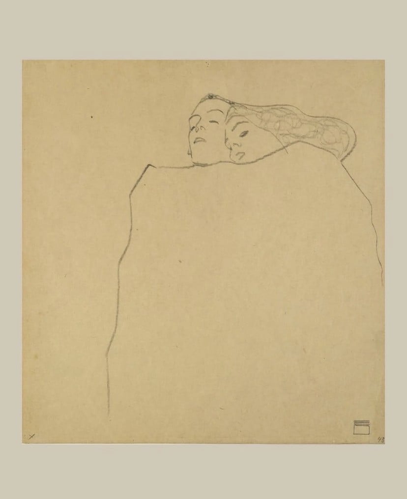 egon schiele imzalı bir eser. 1909 tarihli. egon, gustav klimt’in bir nevi öğrencisi aynı zamanda. zaten esere ilk bakışımızda o aynı yakınlık ve aşk hissiyatını alıyoruz. fakat egon daha basit çizgilerle anlatıyor bu duyguları. klimt gibi gösterişli değil. yine de gören gözler için aynı şekilde etkili ve derin.