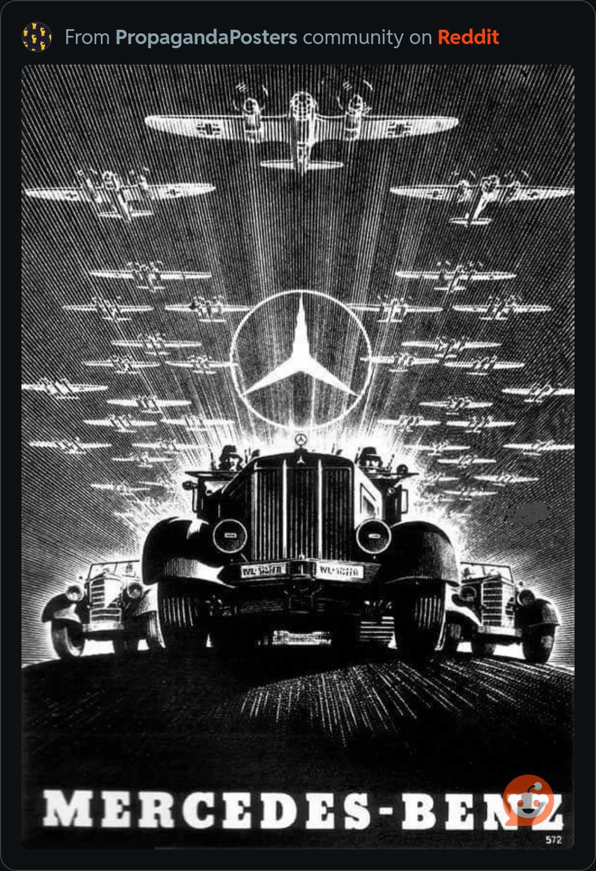 ikinci dünya savaşı sırasında mercedes tarafından kullanılan bir reklam afişi: