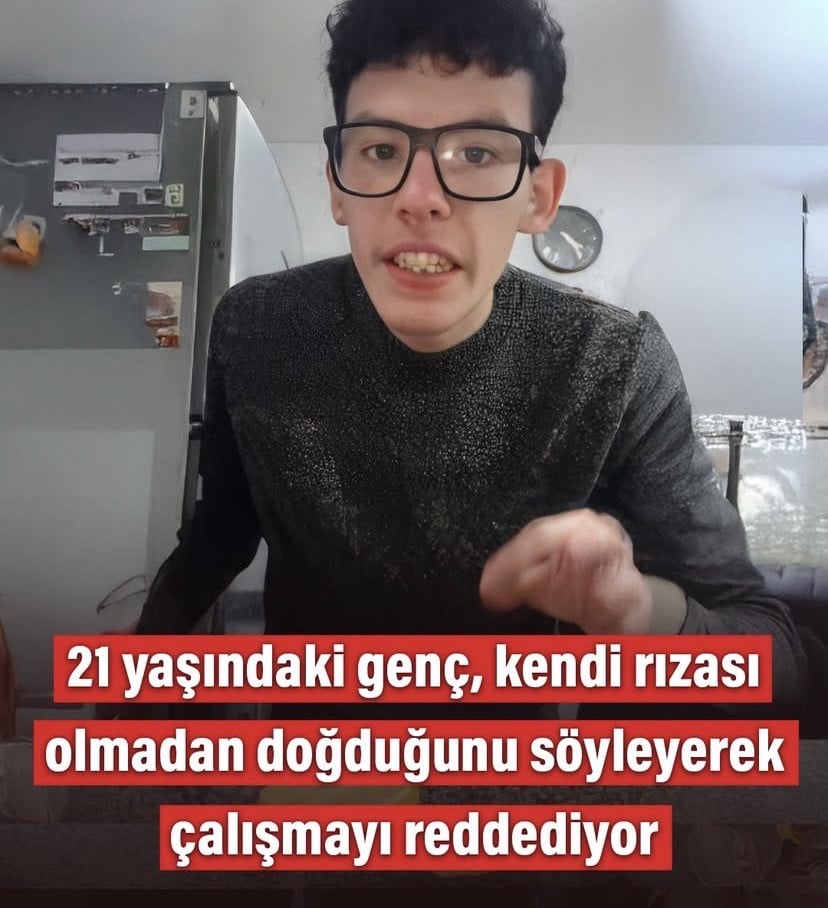 21 yaşındaki bir genç, dünyaya gelmeyi kendi tercihi ile seçmediğini belirterek anne babasının kendisini geçindirmeye devam etmesi gerektiğini savundu. rızası olmadan doğduğunu ifade eden genç, bu nedenle çalışmaya zorlanmasının haksız olduğunu dile getirdi.