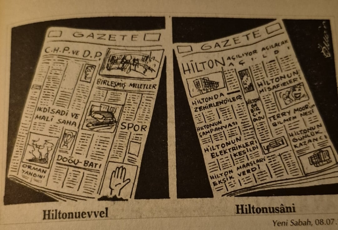 hilton oteli’nin açılışı, ülkenin yeni bir dünyanın eşiğine geldiğinin de göstergesi olarak okunur basında. buna sevinen de vardır, eleştiren de. hürses, 11 haziran 1955 tarihindeki nüshasında bu açılışı, “türk-amerikan dostluğunun ve işbirliğinin en güzel abidelerinden biri” olarak görür. yine hürses’ten takip edecek olursak, mini mini valimiz fahrettin kerim gökay şöyle taçlandırmıştır bu açılışı: “bugün türkiye’nin ayı ve güneşi ile amerika’nın yıldızları bir arada bulunuyor. eski dünya yeni dünyayı kucaklıyor.”