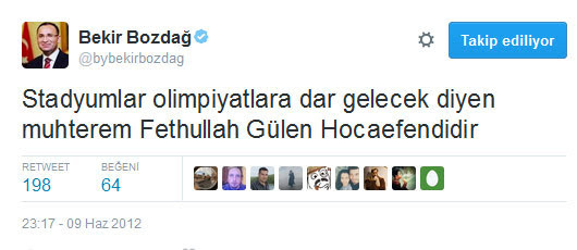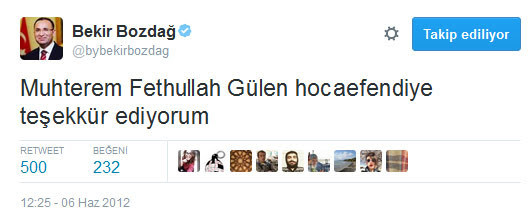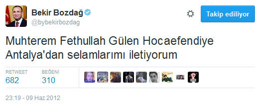 bir zamanların azılı fetocusu, şimdinin sözde mağduru özde mağruru bekir bozdağ adlı şahıstır. bunlarda hiç utanma, sıkılma yoktur. nasıl olsa "dün dündür bugün bugündür" mantığıyla hareket ederler.