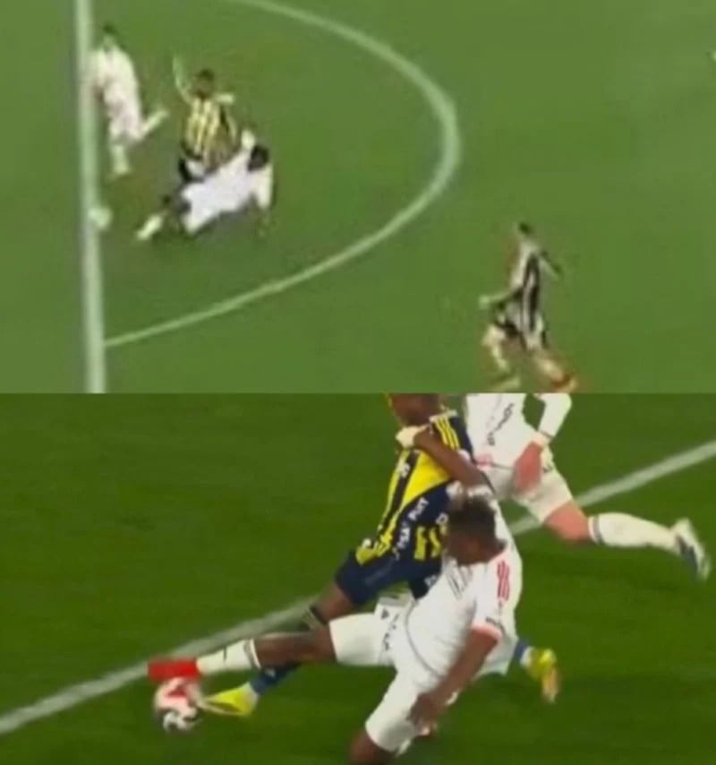 bu videodaki açı da güzelmiş. zaten "darbe" abicim bu. tamam çok sert bir darbe değil ama arkadan ayağa yapıldığında ayağı yerden kesecek kadar da darbe işte. etkili temas da ne? nene'nin zaten ayağı kayıyor ve öyle ceza sahasına giriyor, ceza sahasında temas devam etmese de ayağı yerden kesildikten sonra zaten aksiyonuna aynen devam edemeyeceğinden pozisyonunu kaybederdi nene. cidden akılalmaz...
