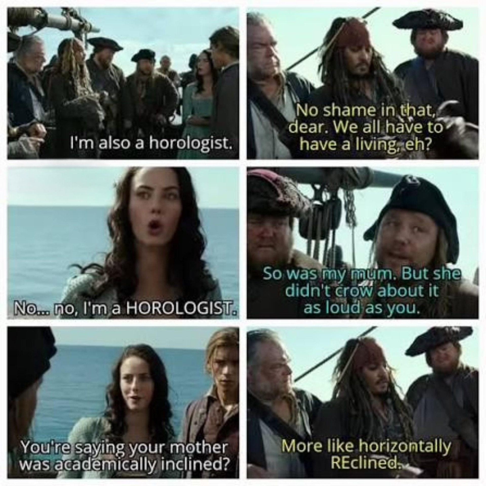 aklıma hep pirates of the caribbean: dead men tell no tales filmindeki ilgili sahneyi getiren saatçi, mekanik saat ustası mesleğinin/zanaatinin yabancı dildeki karşılığı.