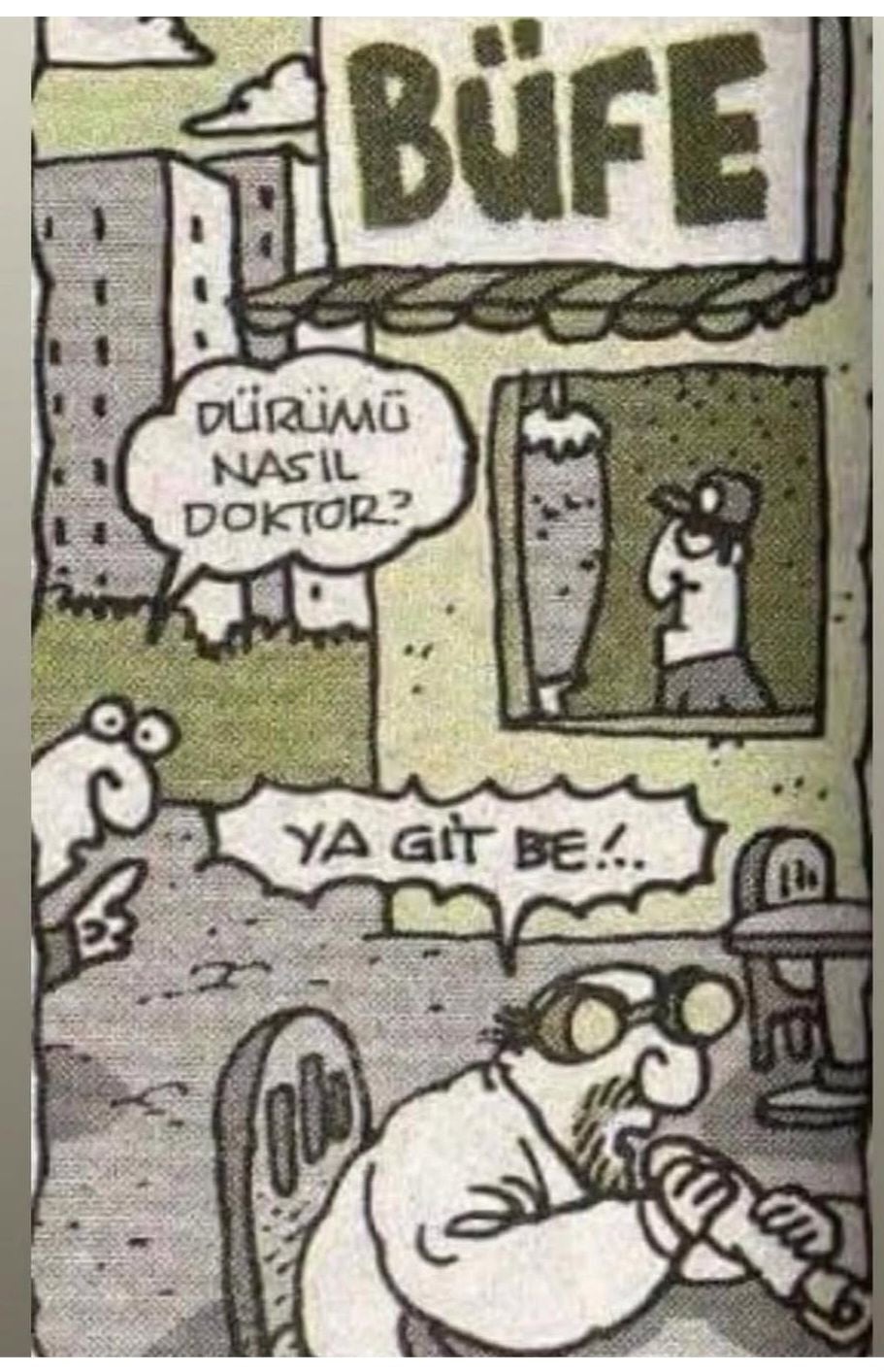 bir müzisyene miydi... bir muhabir, "eşinizi kilo problemi..." diye cümleye başlayarak bir şeyler soracak olmuştu. müzisyen de, "eşimin fazla kiloları var ama bunu problem olarak görmüyor(uz)" deyip muhabirin sorusunu ağzına dürüm yapıp sokmuştu. :d