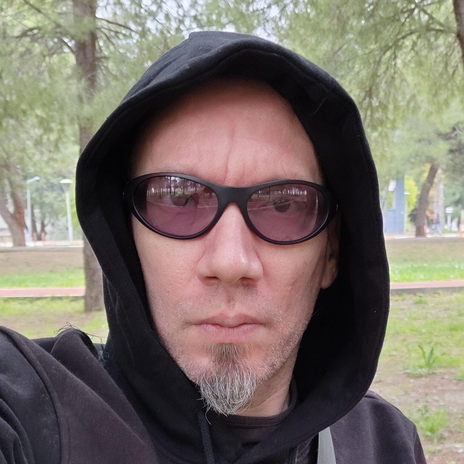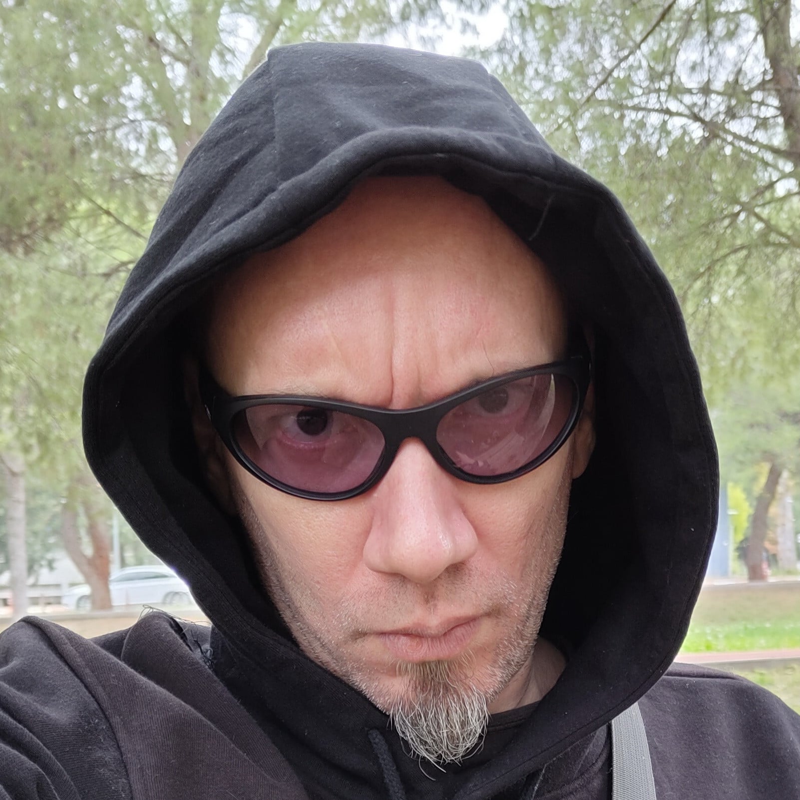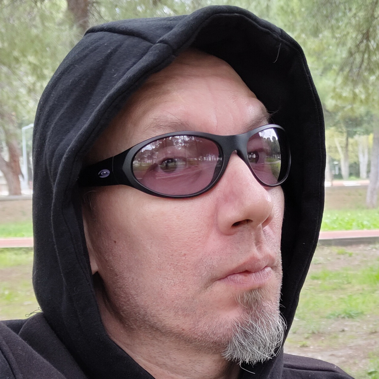 ekleme: şu alttakileri dde tanımı girdiğimin ertesi günü dışarıda çekildim. bunlarda camlarının nasıl da kopkoyu olmadığı daha net anlaşılıyor ve işte farklı açılardan nasıl görünüyor anlaşılsın diye koyayım dedim sonra bu selfie'lerimi de. dışarıdan az ışıklı bir binaya girince de gözlüğü direkt çıkarmama gerek olmaması da güzel, yani çok "karartmadığı" için ortamı.