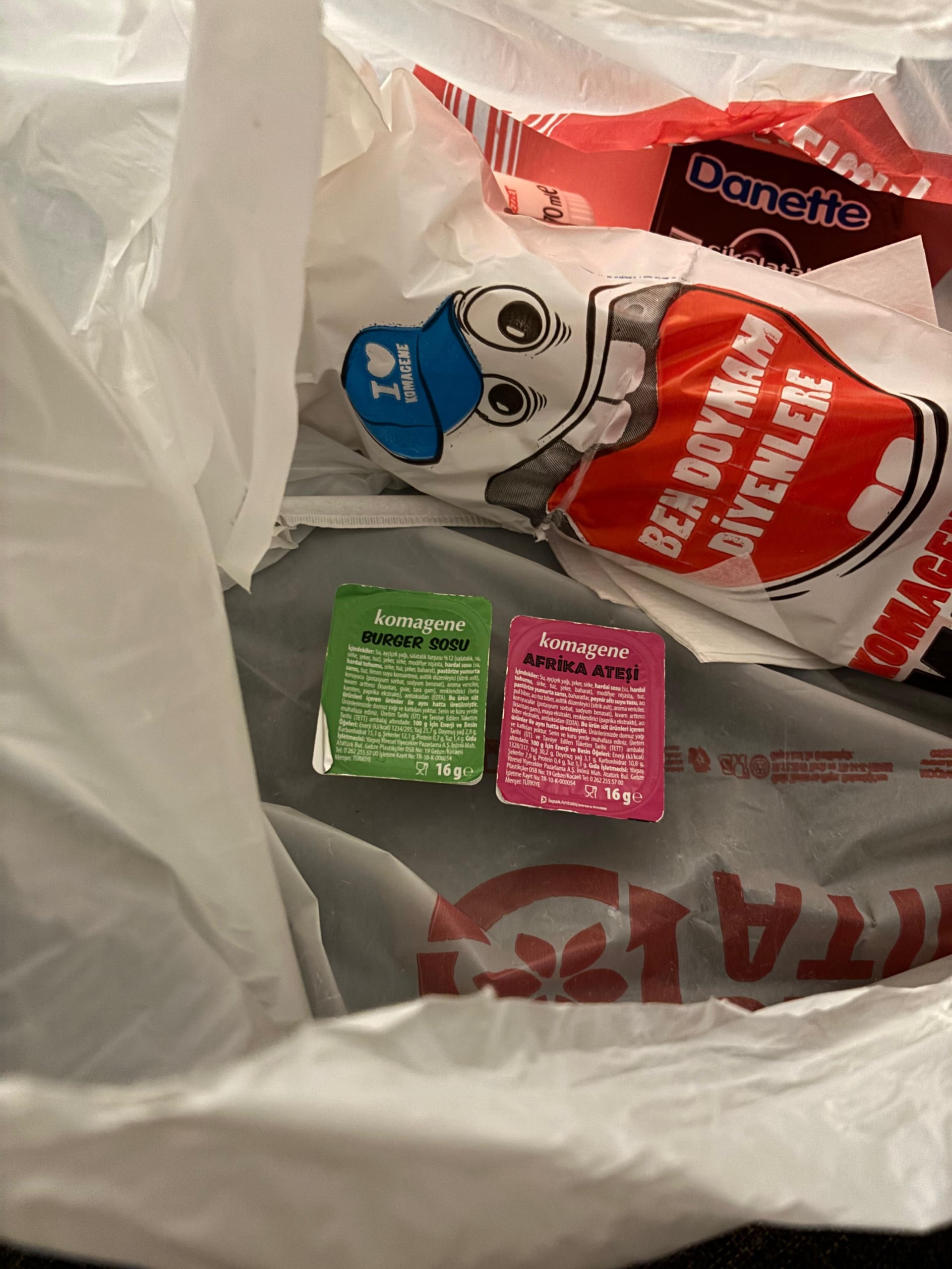 trendyol yemekten çiğ köfte dürüm siparişi verdiğini düşün, sos seçeneklerinden afrika ateşi+burger sosu seçmişsin ama lavuk sosları dürüme sıkmak yerine böyle ayrı ayrı göndermiş. n'apardın? kimsenin başına gelmeyecek abukluklar neden benim başıma geliyor laaaaaaannnnnn